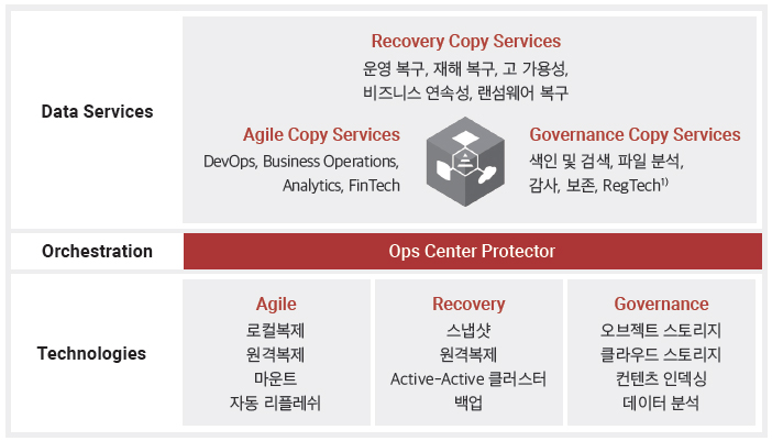 옵스 센터 프로텍터는 데이터 보호 및 복제 관리 기능을 제공해 애플리케이션의 가용성과 탄력성을 높이고 비용을 절감할 수 있는 솔루션이다.