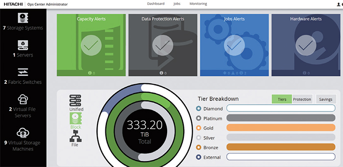 어드미니스트레이터는 통합 대시보드를 통해 자원 및 경보(Alert) 관리, 그리고 용량 정보를 제공한다. 스토리지 풀에 설정된 임계치 값을 초과할 경우에는 ‘용량 경보’가, 복제 작업 실패 시에는 ‘데이터 보호 경보’가 발생한다. 이 외에도 어드미니스트레이터에서 수행 중인 작업의 실패나 하드웨어에 이슈가 발생했을 때도 즉각 경보가 울린다.
