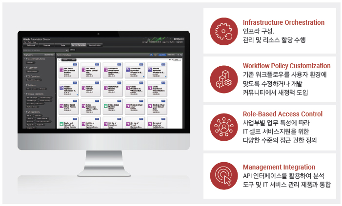 옵스 센터의 가장 큰 특징은 민첩한 IT 운영 관리를 위한 워크플로우 자동화다. 템플릿을 활용한 자원 할당으로 편리한 사용과 신속한 운영이 가능하다. 내·외부 복제 솔루션 운영, 무중단 데이터 이전 기능 등 운영 자동화를 통해 기업의 IT 인프라를 민첩하게 구성하고 안전하게 보호함으로써 디지털 비즈니스의 경쟁력을 높일 수 있다.