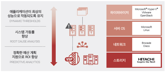 성능 및 용량 예측 분석 과거의 트렌드와 머신러닝 분석 에 기반해 미래의 리소스 요구사항을 예측하고, 리소스 최적화를 위한 계획을 수립한다. 가상 분석을 통해 구성 변경으로 인해 발생 할 수 있는 잠재적인 영향을 평가하고, 사전 예측 결과와 조치를 수행한 후 결과에 대한 분석을 제공한다.