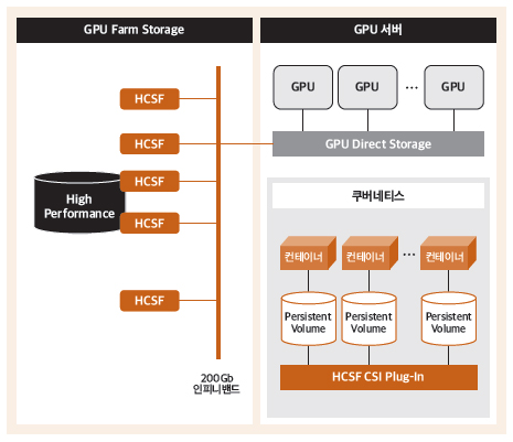 특히 HCSF를 NVMe 고성능 Tier1로 구성해 성능을 극대화하고, GPU 서버와 스토리지 간 직접 연결을 위한 GPU 다이렉트 기술(GDS: GPUDirect Storage)로 GPU 환경의 스토리지 응답 성능을 극대화했다. 또한 CSI(Container Storage Interface Plug-in)를 통한 컨테이너 기반 관리로 스토리지 볼륨 운영을 최적화하고 효율성을 높일 수 있었다.