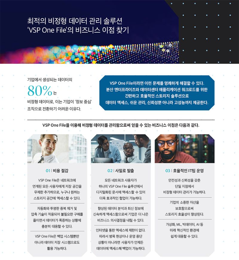 다시 말해, VSP ONE은 안전하고 강력하면서 사용까지 편리한 데이터 경험을 제공하는, 사용자 중심의 하이브리드 클라우드 데이터 플랫폼 전략이라고 할 수 있다.