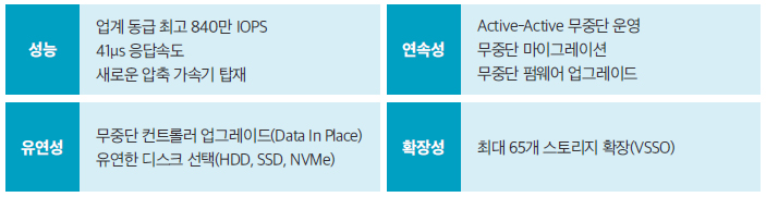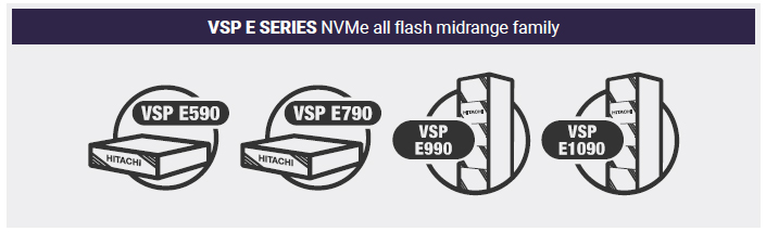 VSP E 시리즈는 NVMe나 SSD, HDD의 다양한 성능과 용량의 디스크를 기업의 업무 환경에 맞춰 선택할 수 있는, 유연성이 높은 솔루션이다.