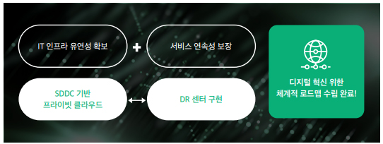 DR 솔루션은 SDDC 기반의 주 데이터센터와 가상화 기반의 원격 복제를 지원하는 DR센터를 구현해 어떤 상황에서도 서비스 연속성을 유지할 수 있도록 완벽한 인프라 환경을 구현했다. 특히, 효성인포메이션시스템은 기존 장비를 최대한 활용해 DR 환경을 구축함으로써 비용 효율성을 높였다는 점에서 높은 점수를 받았다.