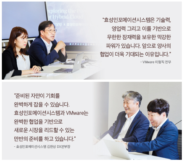 VMware는 효성인포메이션시스템이 30여 년을 넘는 기간 동안 국내 IT 시장을 선도하면서 쌓은 내공과 변화에 대처하는 기민함을 높이 평가한다.
