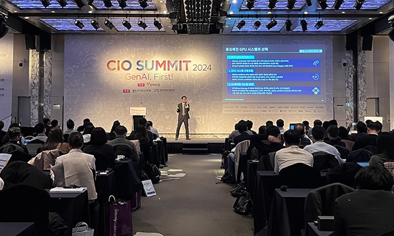 지난 2월 22일, 효성인포메이션시스템은 전자신문 CIO Summit 2024에서 ‘스스로 탐구하는 AGI와 GPU인프라 이야기’를 주제로 AI를 넘어선 AGI 시대에 더욱 중요해진 GPU 시스템, 그리고 AI 업무에 적합한 고속 데이터 처리를 위한 인프라에 대해 소개했다.