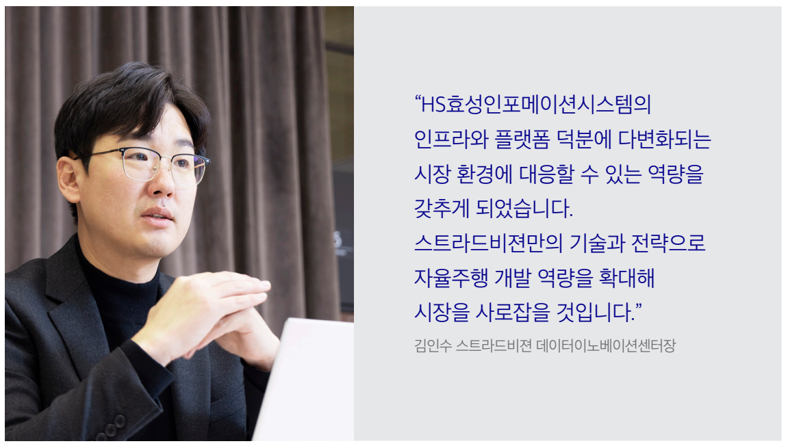 “HS효성인포메이션시스템은 우리에게 단순한 장비 공급업체가 아닙니다. 중장기 AI 인프라 파트너로서 지속적인 성능 개선과 확장 전략을 함께 논의해 나갈 계획입니다. 스트라드비젼이 글로벌 시장에서 빠르게 성장하고 있는 만큼, HS효성인포메이션시스템과의 협업이 글로벌 AI 인프라 레퍼런스로 자리매김하기를 기대하고 있죠. 우리의 성장이 곧 HS효성인포메이션시스템의 기술 경쟁력과 가치가 글로벌 시장에서 입증되는 사례가 되기를 희망합니다.”