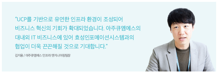 UCP로 새로운 HCI 환경을 구축한 아주큐엠에스는 한층 개선된 환경과 사용의 편의성이 높아진 점을 몸소 체감하는 중이다.
