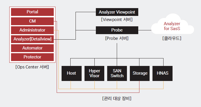 옵스 센터는 최신 VSP 제품군에서 지원하는 용량, 구성, 성능, 장애 이벤트, 복제 관리 등 주요 기능에 기본 번들로 제공된다. 스토리지 인프라를 통합 관리하는 어드미니스트레이터(Administrator), 분석 및 인사이트를 통해 스토리지 환경을 최적화하는 애널라이저(Analyzer), 애플리케이션 및 서비스 중심의 자동 프로비저닝과 리소스 배포를 지원하는 오토메이터(Automater), 데이터 보호 및 복제 관리를 지원하는 프로텍터(Protector) 등으로 구성되어 있다.