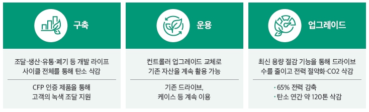 효성인포메이션시스템 제품은 시스템의 수명주기를 연장하는 영구적인 설계 사고방식을 활용하고 있다. 따라서, 시스템 수명주기를 최대 10년까지 연장하고 전체 시스템을 교체하거나 3~5년마다 재활용센터로 보내지 않아도 된다. 또한 스토리지 솔루션 세대 간 탄소 배출량은 이전모델보다 30~40% 감소했다. 탄소 배출량을 줄이는 친환경 제품에 투자하면, 더 낮은 비용으로 기업의 위상을 높이면서 지속가능성 목표 역시 달성할 수 있다. 비즈니스와 지구를 위해 탄소 배출 저감 프로젝트를 고민 중이라면, 바로 지금 시작해야 한다.