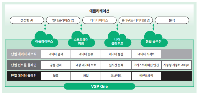 이러한 기업들의 고민을 해결하기 위해 하이브리드 클라우드 데이터 플랫폼 전략, VSP One이 등장했다. VSP One은 복잡한 데이터 스토리지 환경을 간소화해 온프레미스와 퍼블릭 클라우드 환경 전반에 걸친 하이브리드 환경에서 정형 및 비정형 데이터를 이용하고 관리할 수 있는 솔루션이다.