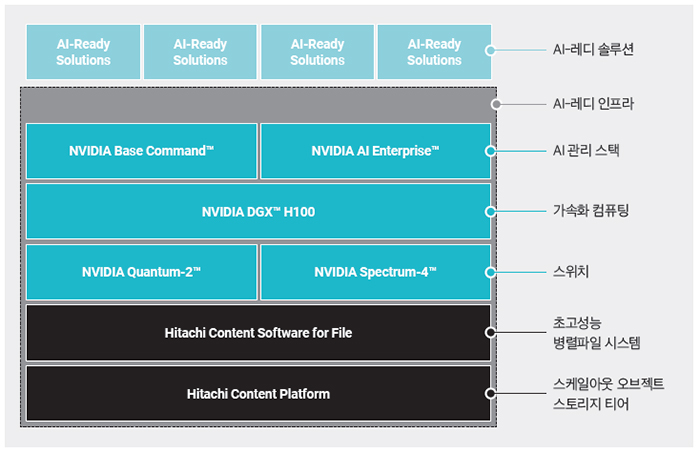 히타치iQ 포트폴리오의 첫 주자는 엔비디아 H100 텐서 코어 GPU로 구동되며, 엔비디아 DGX BasePOD 인증을 획득함으로써 기업들이 AI 인프라를 구축하고 확장할 수 있도록 레퍼런스 아키텍처를 제공한다.