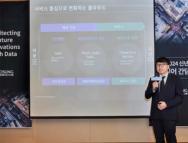 다양한 인프라와 솔루션을 기반으로 기업들의 디지털 전환(DX)을 적극 지원해 온 효성인포메이션시스템. 올해는 디지털 전환에서 한 단계 더 나아가 AI 시대를 위한 비즈니스에 시동을 걸었다. 효성인포메이션시스템이 지난 1월 개최한 ‘2024 신년 브리핑’에서 발표한 올해의 주요 비즈니스 전략과 추진 방안을 소개한다.