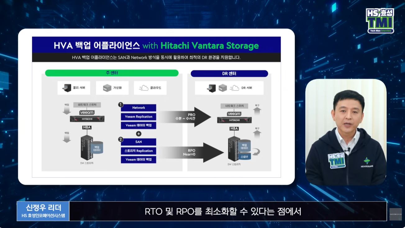 최근 HS효성인포메이션시스템과 빔(Veeam) 코리아는 통합 백업 어플라이언스 HVA(Hitachi Veeam Appliance)를 출시하며 차세대 엔터프라이즈 데이터 백업 시장에 출사표를 던졌다. 양사는 세일즈와 마케팅 협업 등 긴밀한 협력 관계를 유지하는 한편, Veeam 본사 차원에서 히타치 밴타라 스토리지와 관련한 플러그인 개발, 성능 테스트 등을 꾸준히 진행하고 있다.