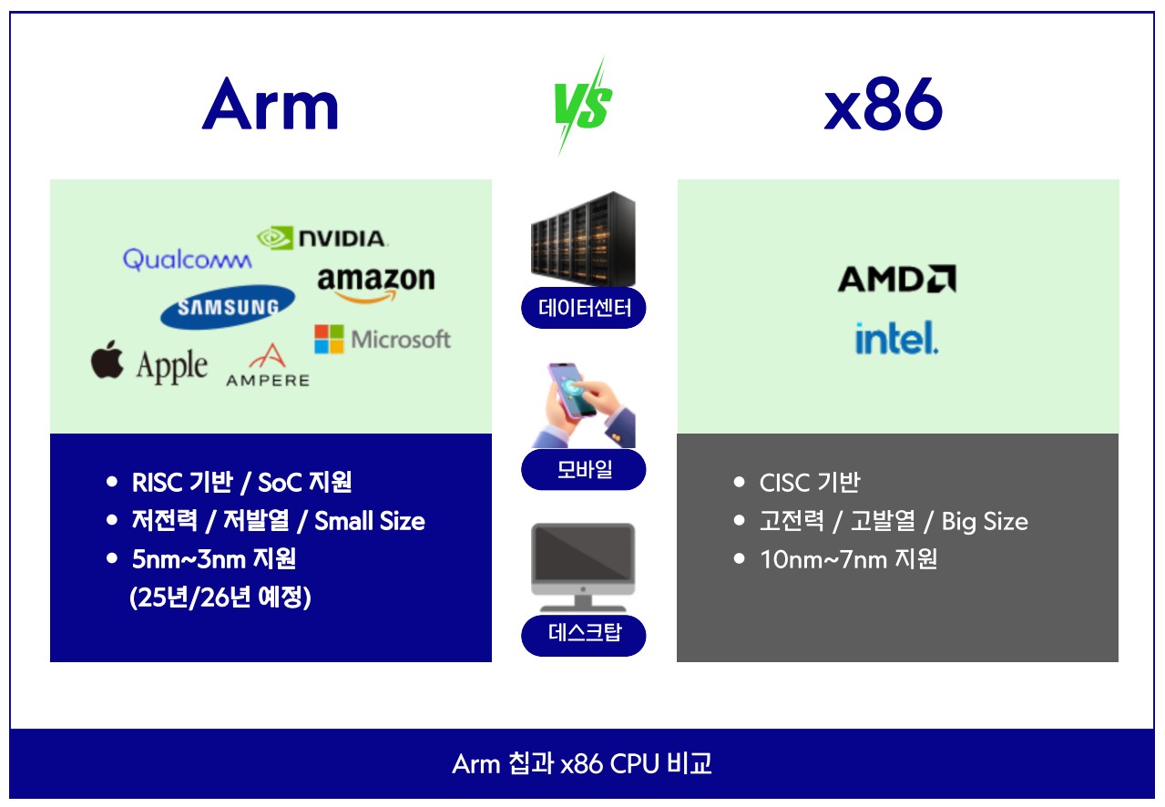 이러한 Arm 아키텍처가 최근에는 산업 장비 및 서버 시장으로 확장되며, AI 인프라의 전력 문제 해결을 위한 대안으로 부상하고 있다.