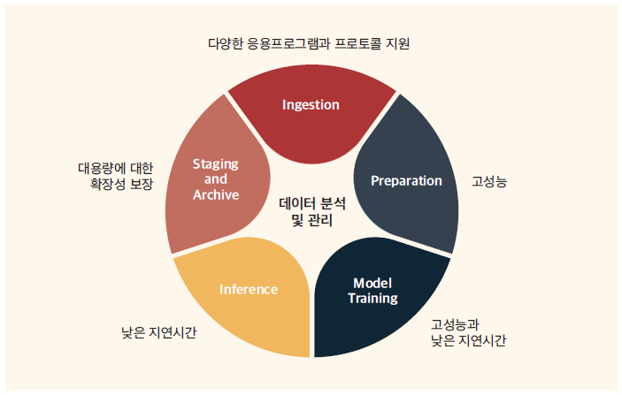 데이터 분석을 위해서는 고성능 스토리지가 필수적이다. 분산된 데이터를 여러 애플리케이션과 연동할 때 다양한 프로토콜을 지원하고, 데이터를 신속히 가져와서 분석해야 하기 때문이다. 이 때 데이터 분석과 관리를 위한 단계별 요구사항을 충족시켜주지 못하면 데이터는 사일로화 된다. 결국, 데이터 분석을 원하는 사용자들은 분석 비용과 시간이 증가할 뿐만 아니라, 데이터 인사이트를 도출하기 어려운 한계에 직면한다.