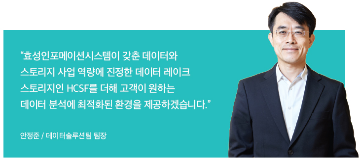 효성인포메이션시스템은 빅데이터 처리·분석 플랫폼인 펜타호와 오브젝트 스토리지 HCP, 초고성능 병렬 파일시스템 스토리지 솔루션 HCSF(Hitachi Content Software for File) 등을 통해 데이터 관리와 활용에 필요한 모든 인프라와 솔루션을 제공하면서 성장의 궤를 함께했다.
