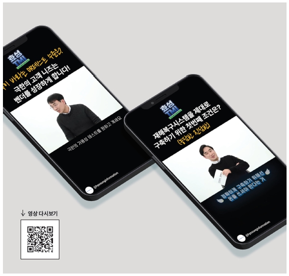 이처럼 현재 재해복구에 대한 기업 대응 방식 및 변화를 시작으로, 에피소드 1에서는 재해복구시스템을 이해하기 위한 핵심 사항, 재해복구시스템 구축을 위해 알아야 할 사항 및 기본 개념 정리, 그리고 데이터 보호방식별 특장점에 대해 자세히 설명한다. 그리고 효성인포메이션시스템이 제공하는 재해복구 솔루션을 기반으로 효과적인 재해복구시스템을 구축할 수 있는 전략 및 방안까지 소개한다. 여기에 고객과의 실제 프로젝트 구축 과정에서 겪은 에피소드와 IT 컨설턴트들을 대변하는 진솔한 속마음까지 쇼츠(shorts) 영상을 통해 만나볼 수 있다.